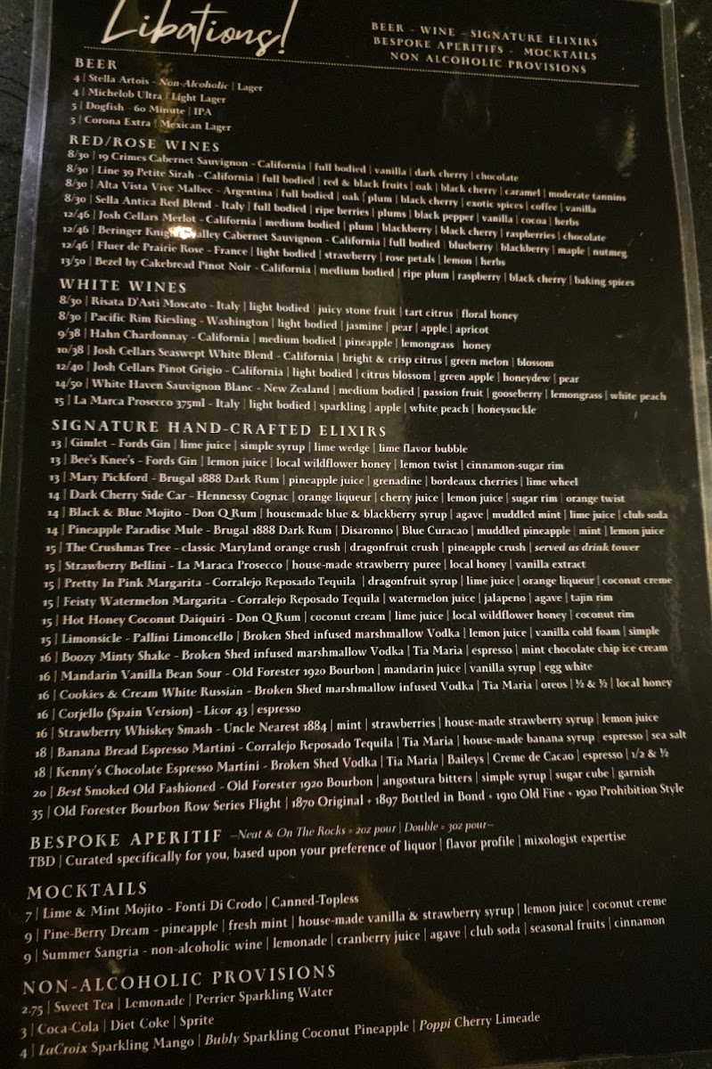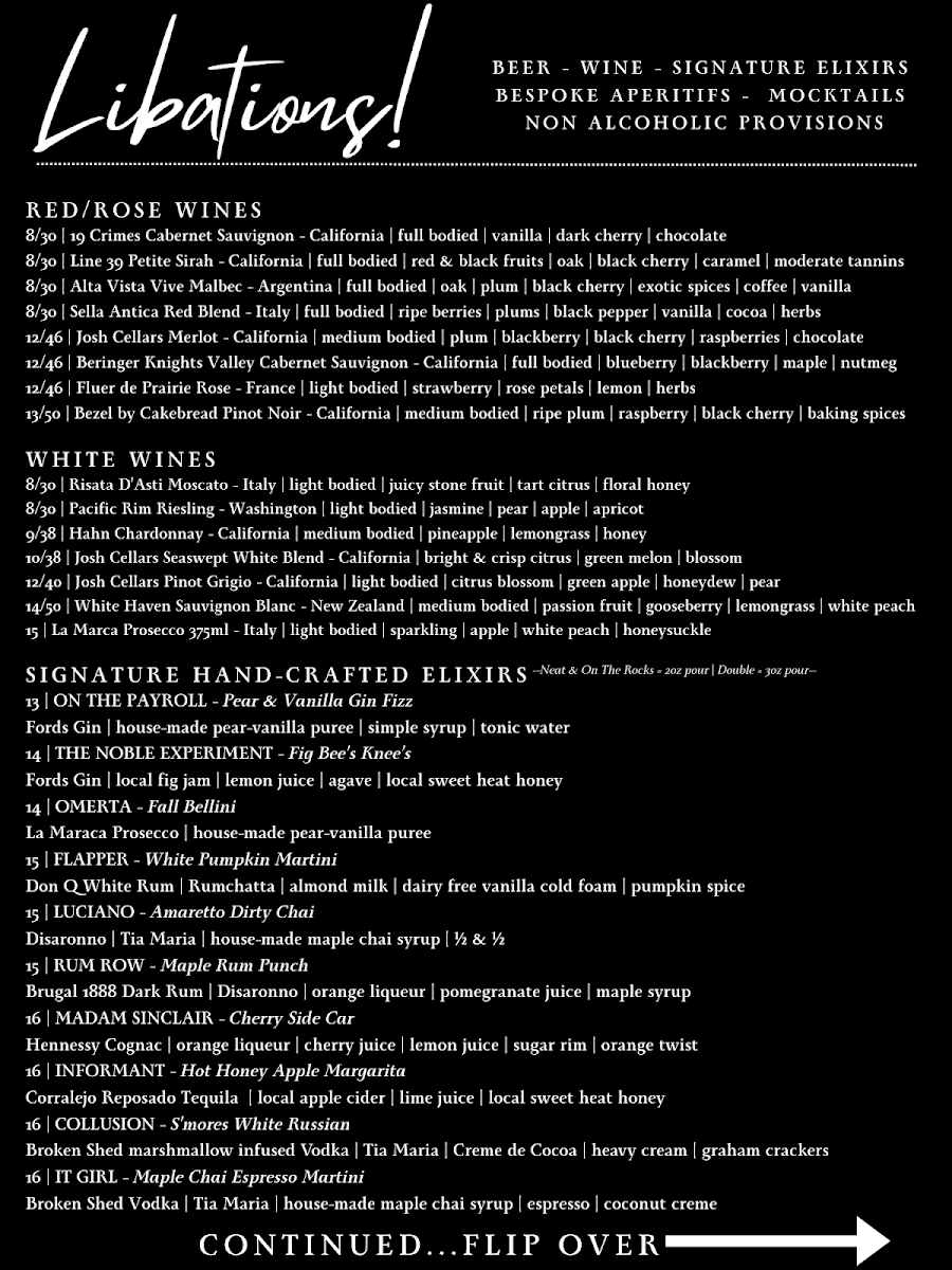 The The Cured Plate - Libations & Lounge Menu at 27 S Walnut St Unit 103 in Milford, Delaware, reads like a celebration of comfort, craftsmanship, and creative balance. It’s a menu designed not just to satisfy hunger but to elevate the act of dining into a full sensory experience. The wine list alone reveals the restaurant’s thoughtful curation-each bottle chosen for character and approachability. Guests can unwind with a glass of 19 Crimes Cabernet Sauvignon from California, deep and bold with dark fruit and oak, or savor the smoother elegance of Josh Cellars Merlot. The Italian Sella Antica Red Blend delivers rustic charm, while Argentina’s Alta Vista Vive Malbec offers a velvety finish that pairs beautifully with hearty dishes. For those preferring lighter notes, the white wines bring crisp and refreshing balance. Hahn Chardonnay from California delivers buttery depth, Pacific Rim Riesling from Washington adds a hint of sweetness, and Risata D’Asti Moscato from Italy offers a sparkling, floral touch that’s perfect for lingering conversation. The addition of Josh Cellars Seaswept White Blend and Pinot Grigio rounds out the list with approachable options that complement seafood, salads, and lighter fare.